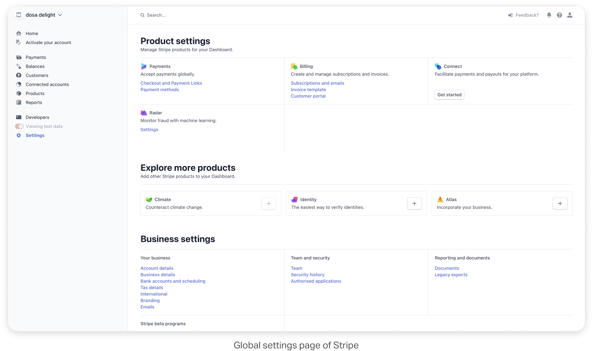 The gratification of seeing their published Payment Page precedes exploring settings, which comes as an afterthought.